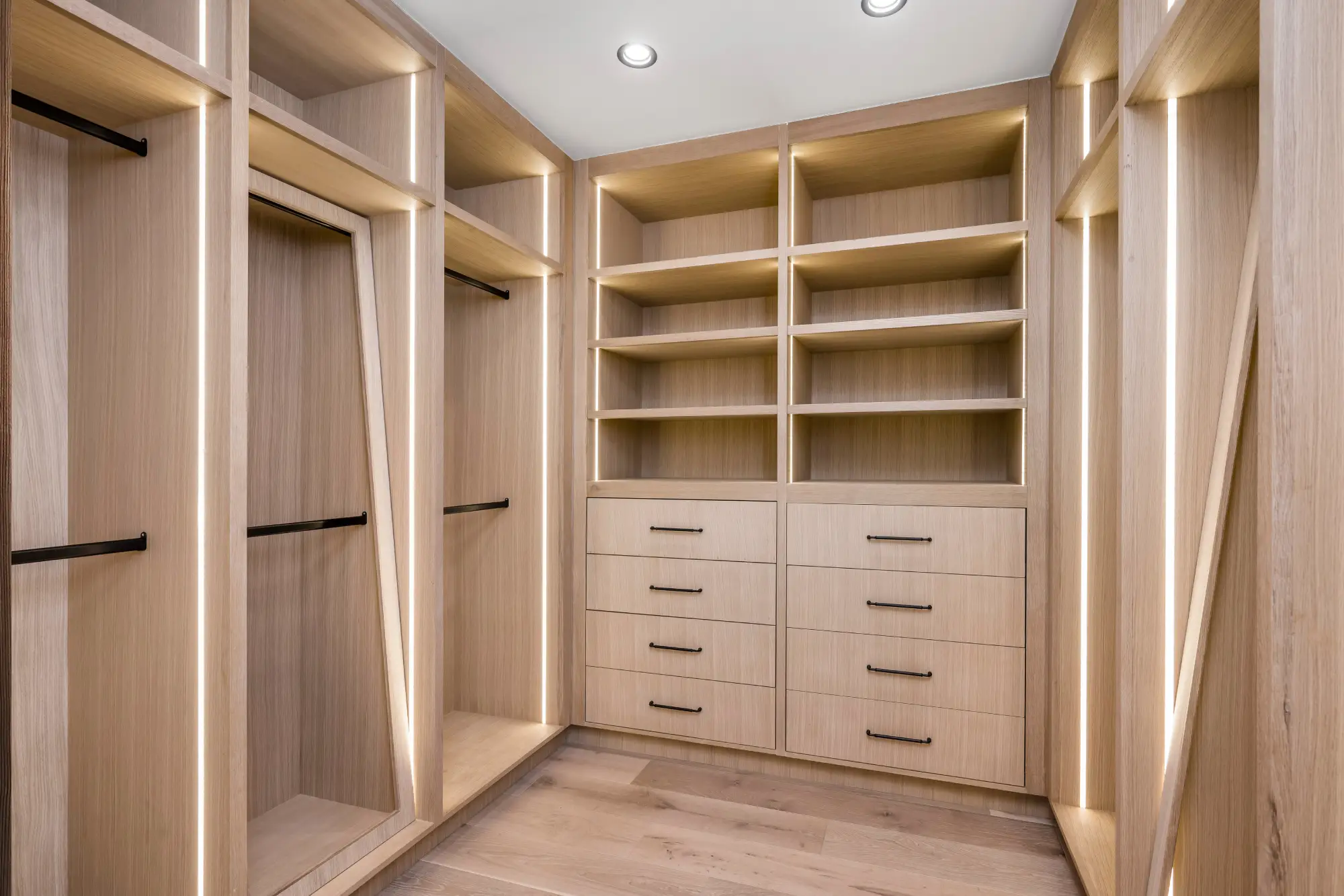- Luxury Finishes & Accessories – Elevate your closet with premium finishes, soft-close drawers, and custom lighting.