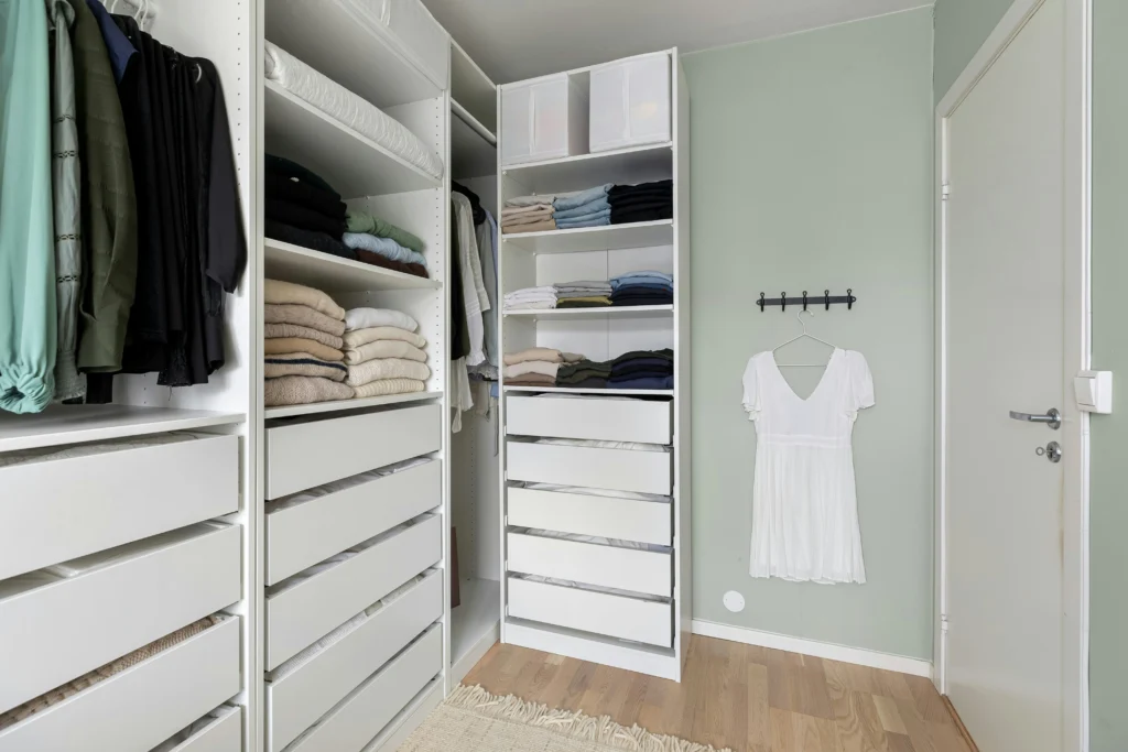 In urban vacation apartments, where space is often limited, closets need to maximize every available inch. Slim, adjustable shelving units, multi-tiered hanging rods, and pull-out baskets allow for efficient storage of clothing, shoes, and accessories. Wall-mounted hooks, over-the-door racks, and labeled compartments help keep frequently used items within easy reach while preventing clutter. Multi-functional furniture with built-in storage can further optimize space, providing both organization and convenience for short-term stays or long weekends. Thoughtful design ensures that even small closets remain highly functional, making packing, unpacking, and seasonal rotations effortless.